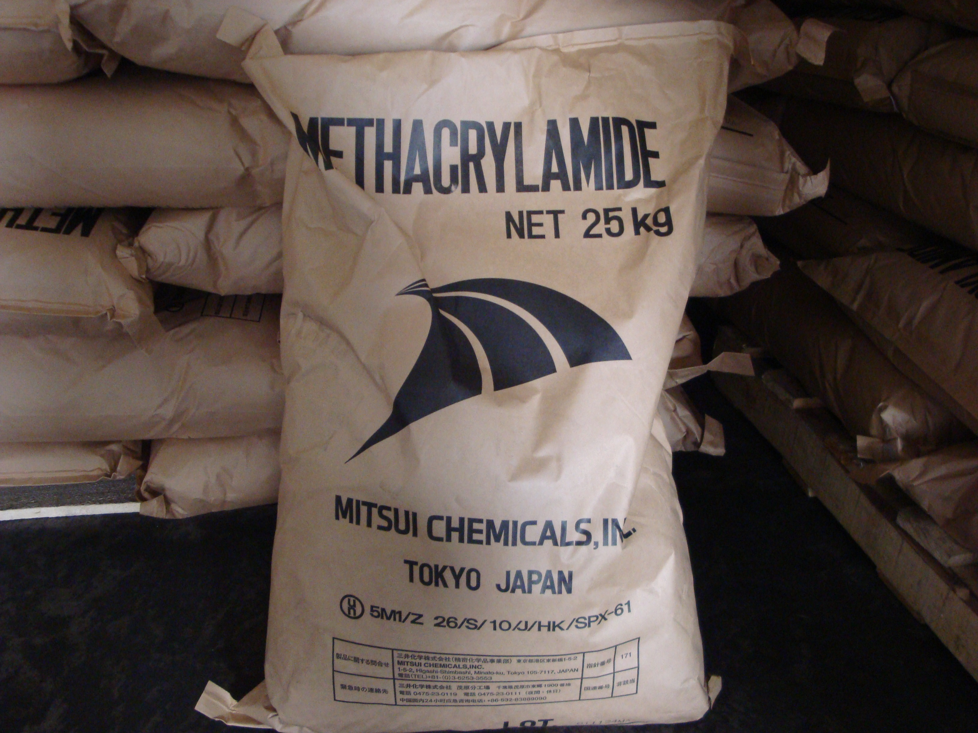 甲基丙烯酰胺(Methacrylamide)是一种有机化合物,分子式为C4H7NO。又名2-甲基丙烯酰胺(2-Methylacrylamide),2-甲基-2-丙烯酰胺(2-methyl-2-propenamid),α-丙烯酰胺(α-Methylpropenamide,alpha-Methyl acrylic amide)。常温下甲基丙烯酰胺为白色晶体,工业品呈微黄色。易溶于水,可溶于醇、二氯甲烷,微溶于醚、氯仿,不溶于石油醚、四氯化碳。高温下甲基丙烯酰胺可发生聚合反应,放出大量热量而易引起容器破裂和爆炸事故。遇明火、高热甲基丙烯酰胺可燃,燃烧分解时, 放出有毒的一氧化碳、二氧化碳、氧化氮等氮氧化物气体。本品为有毒化学品,对眼睛、皮肤、粘膜有刺激作用,密封避光保存。甲基丙烯酰胺是生产甲基丙烯酸甲酯的中间体。